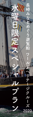 | 時刻表 | 9:00出航・13:00出航の1日2便 (定期航路) 毎年4月より翌年3月毎日運航 運行スケジュール長崎港発~港帰着まで約2時間30分